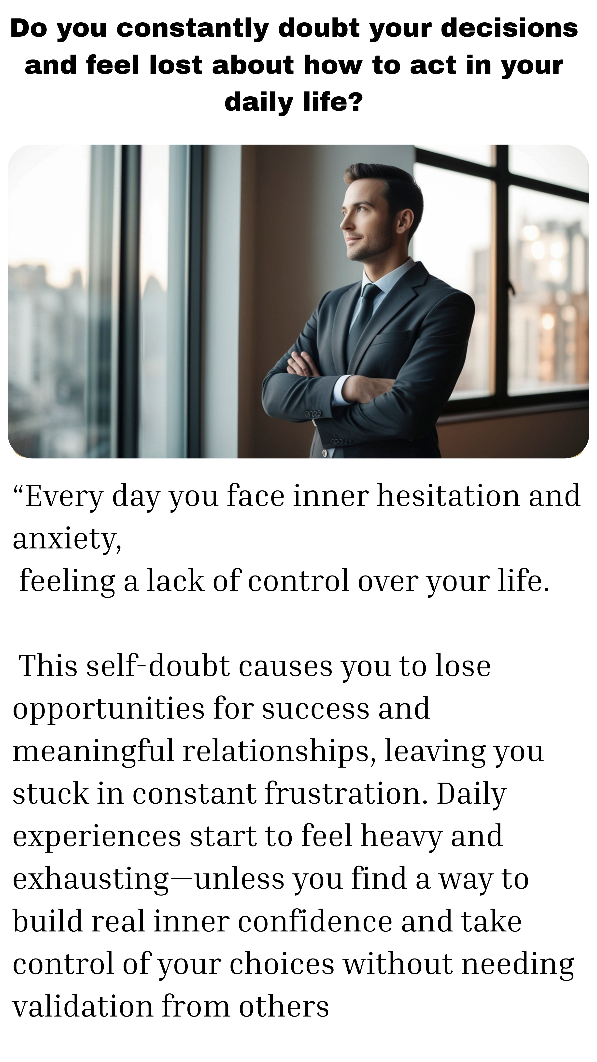 Now is the time to build lasting confidence, a strong presence, and decisive actions without hesitation. With clear tools and a supportive community guiding you every step of the way, your transformation starts today.