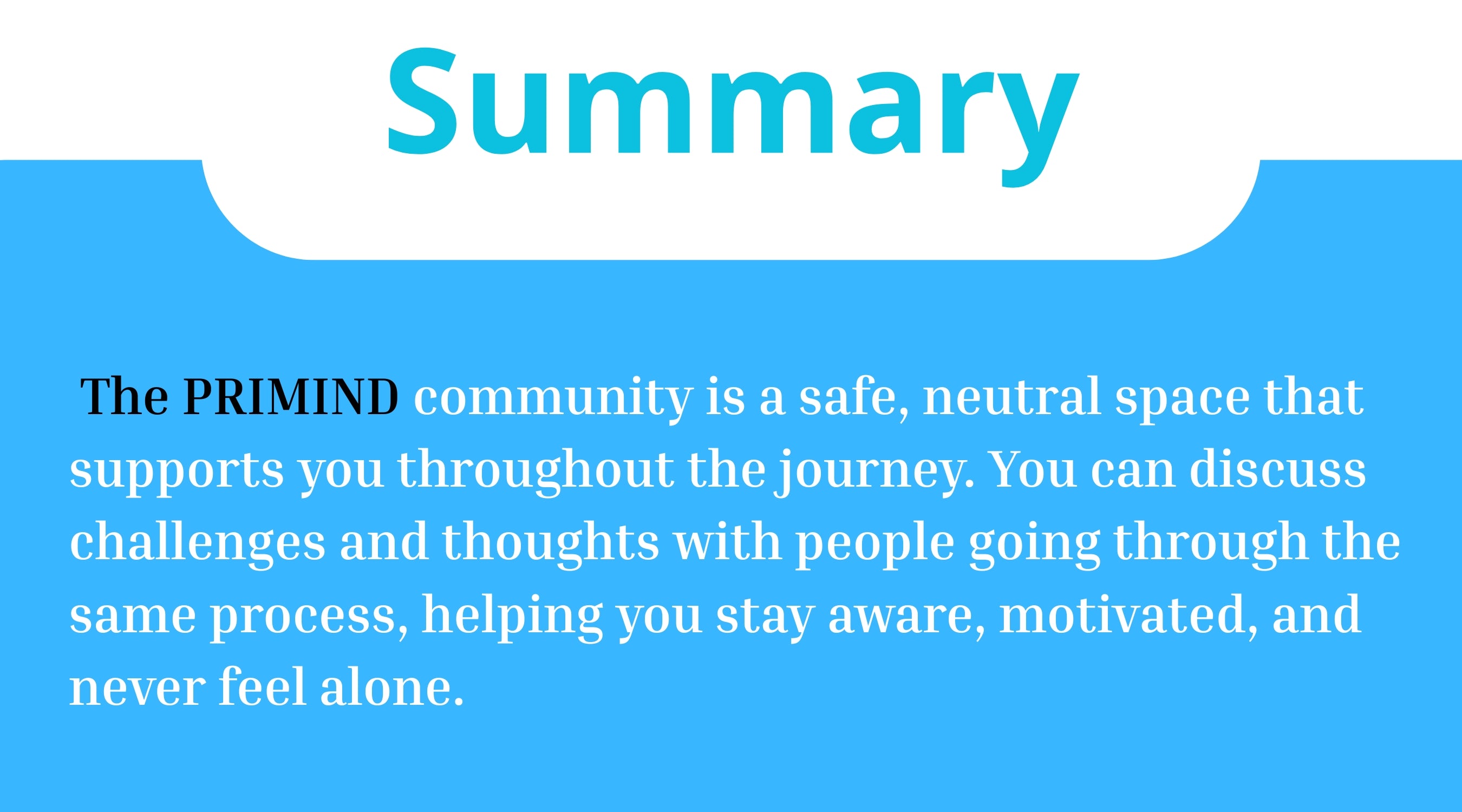 PRIMIND COMMUNITY offers a safe and neutral space for support, reflection, and shared experiences—keeping you motivated and aligned throughout the journey.